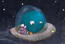 One of the first of Aleck Morton’s hilarious illustrations in Allen The Alien is one of Allen and Byte flying a spaceship toward Earth. These two fun-loving aliens are looking for some serious play time! So, why not join the fun? Celebrate World UFO Day with Allen, Byte and some space-y activities!