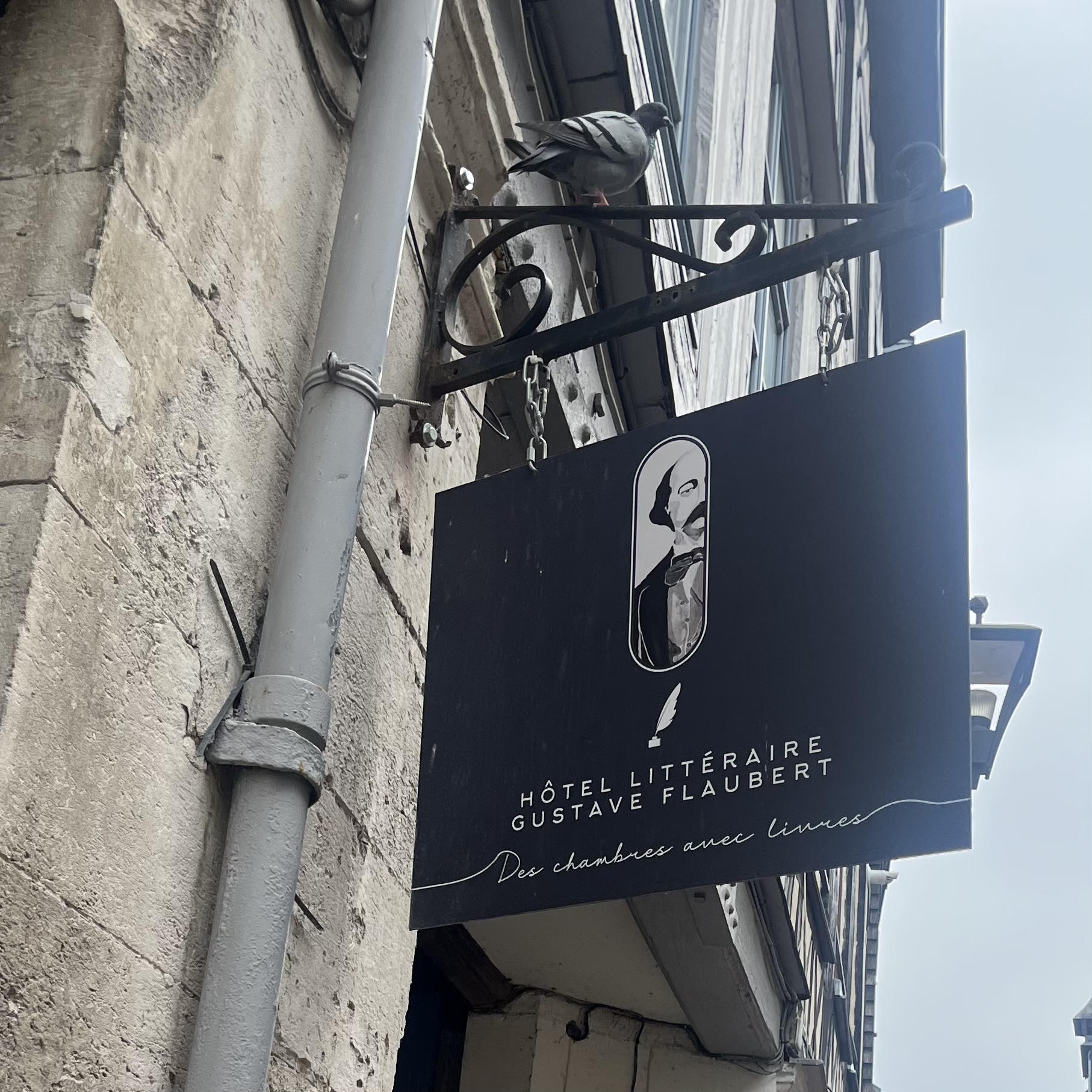 I’m always on the lookout for bookish places, so when I was wandering (read: slightly lost) in Rouen, France recently, I noticed this sign. Now, my French is awful, but I do remember a couple of words from high school classes: livres = books, chambres = rooms. Plus, the big clues of hôtel and littéraire seemed very exciting to me. Well, imagine my surprise when what I thought might be a hotel on a spot where Flaubert once wrote, turned out to be an entire society dedicated to authors.